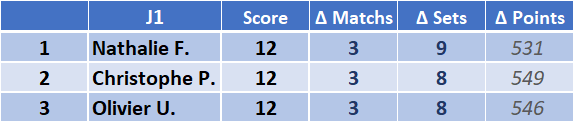 Calendrier et Résultats du Championnat interne